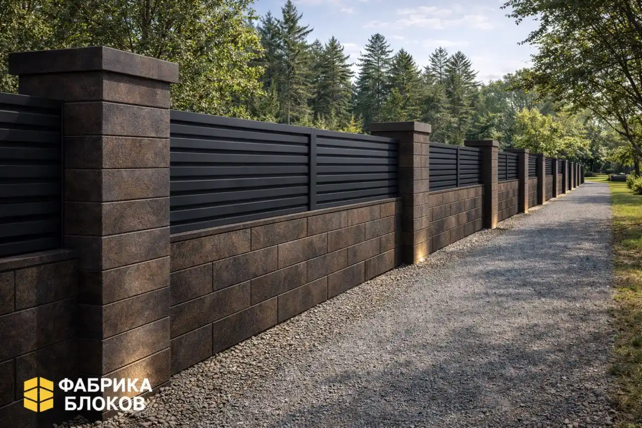 Используется для строгих, массивных заборов и архитектурных решений, где нужен тёмный, «тяжёлый» визуальный эффект.