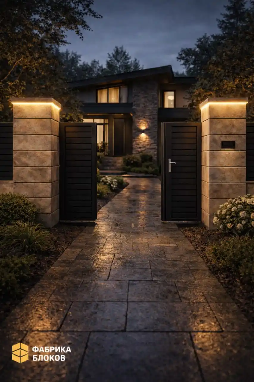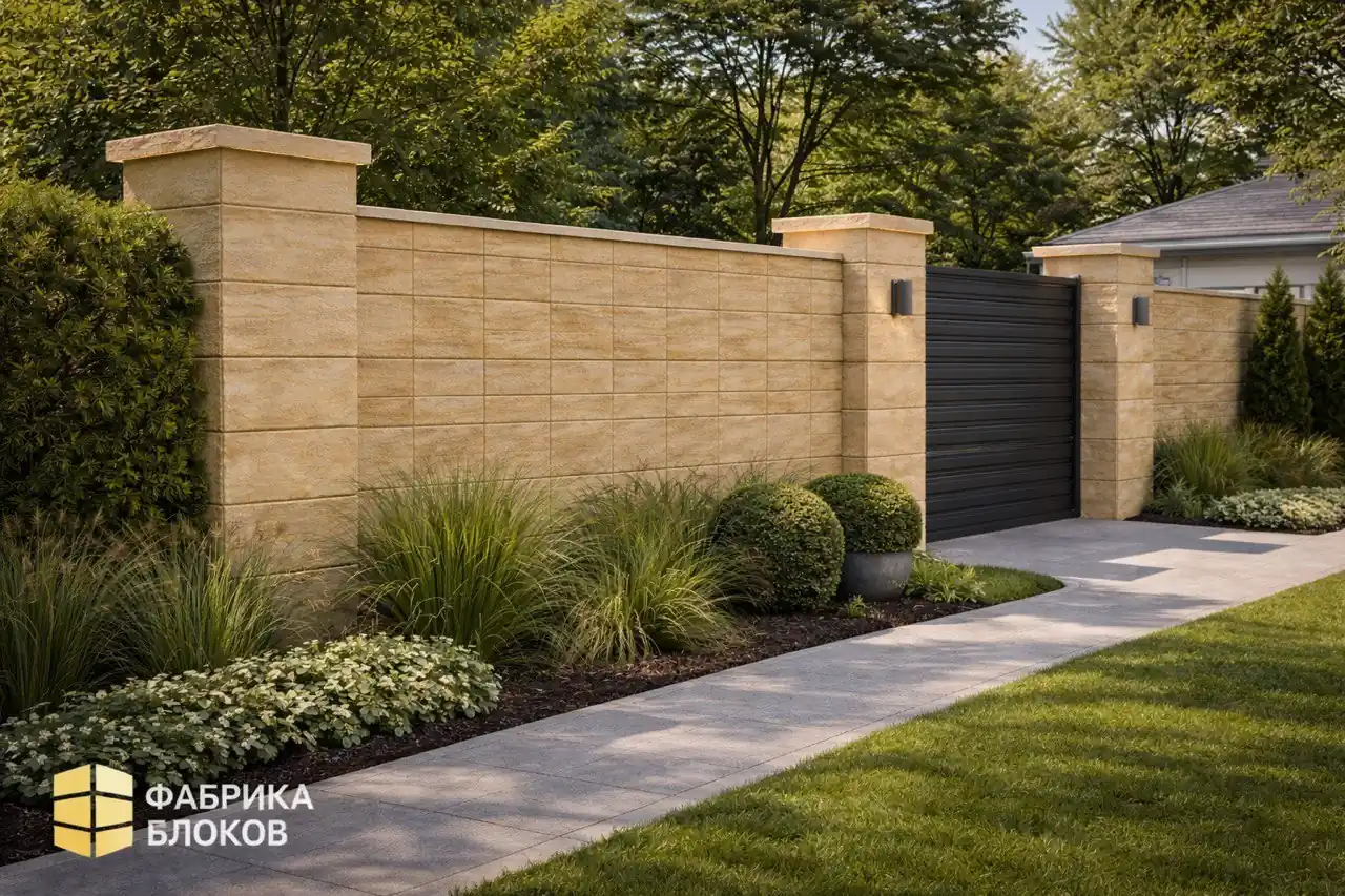 Подходит для загородных домов, участков с тёплой архитектурой и солнечных фасадов