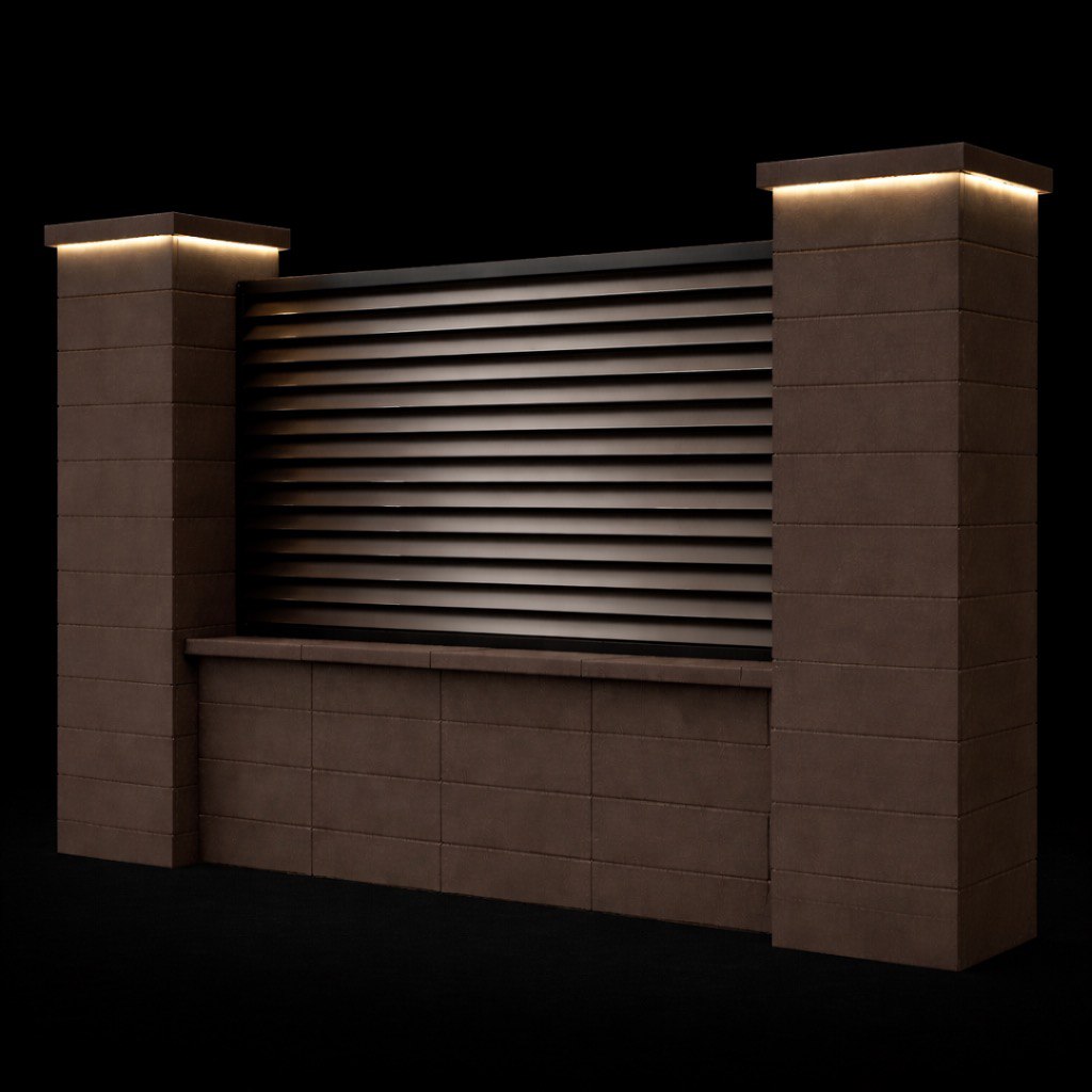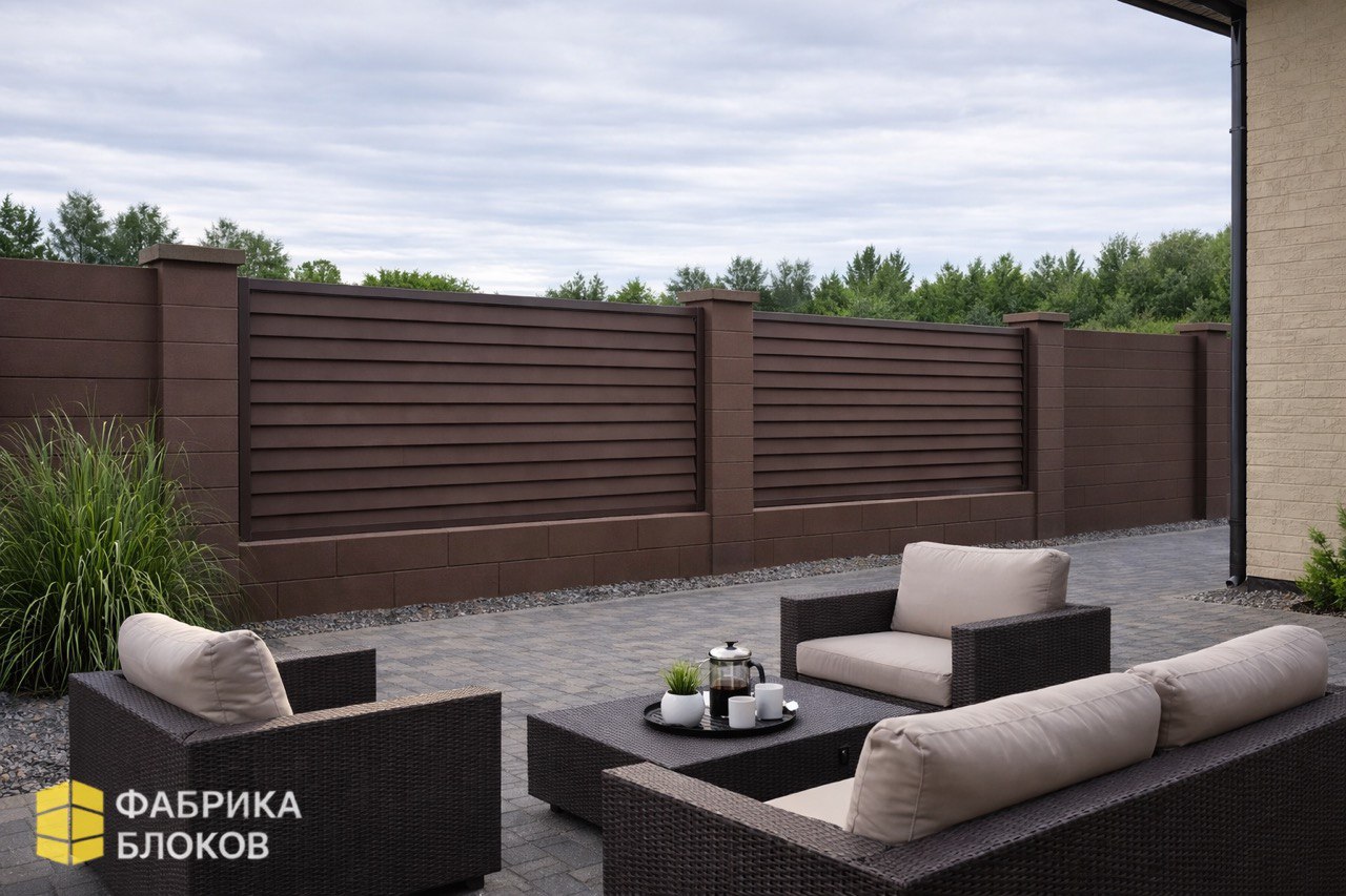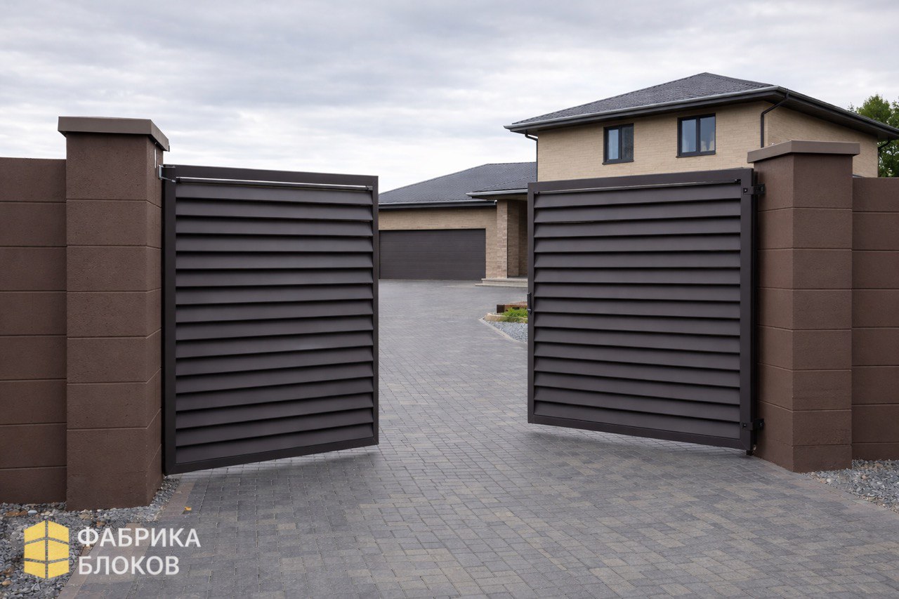 Отлично сочетается с тёплыми фасадами, деревом, металлом тёмных оттенков, графитом, антрацитом. Подходит для заборов, столбов, цоколей, где важны солидность и ощущение надёжности.